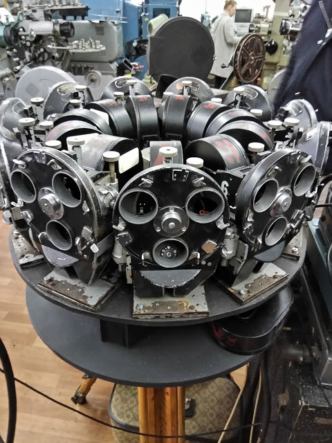 А этот монстр, не что иное, как специально смонтированные 11(?) синхронных камер, для фильмов по системе «Круговой панорамы» для единственного в СССР кинотеатра на ВДНХ.