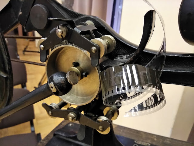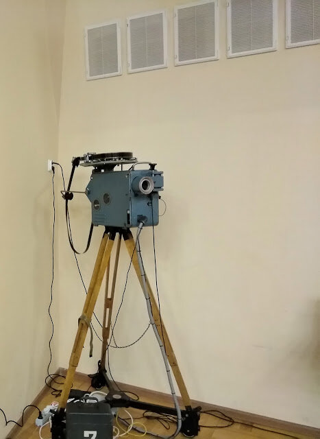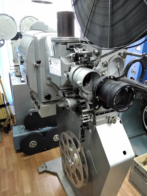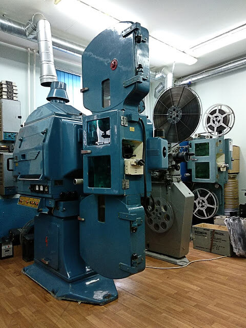 Рабочие лошадки кинематографа. Проекторы КПТ, долгое время ими оснащались все кинотеатры. Фонарь работал на угольной дуге, создавал достаточный поток света. Проектор был надежный. Обнаружилось, что я не сфотографировал, как он выглядит. В детстве, я учился «заряжать» именно на одной из моделей этой линейки. Помню, что пока я был за постом, киномеханик тетя Наташа опускала заслонку. На экране шел ворованный фильм «Нефтедобытчицы», слишком много «эротики».